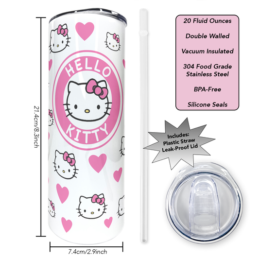 Cartoon Kitty - Hearts | 20oz Stainless Steel Skinny Coffee Tumbler