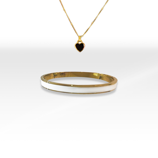 Gold & White Bangle & Reversable Heart Necklace Jewelry Set