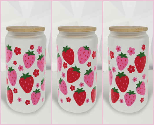Strawberries - Pink Red| 16oz Libby Glass Tumbler